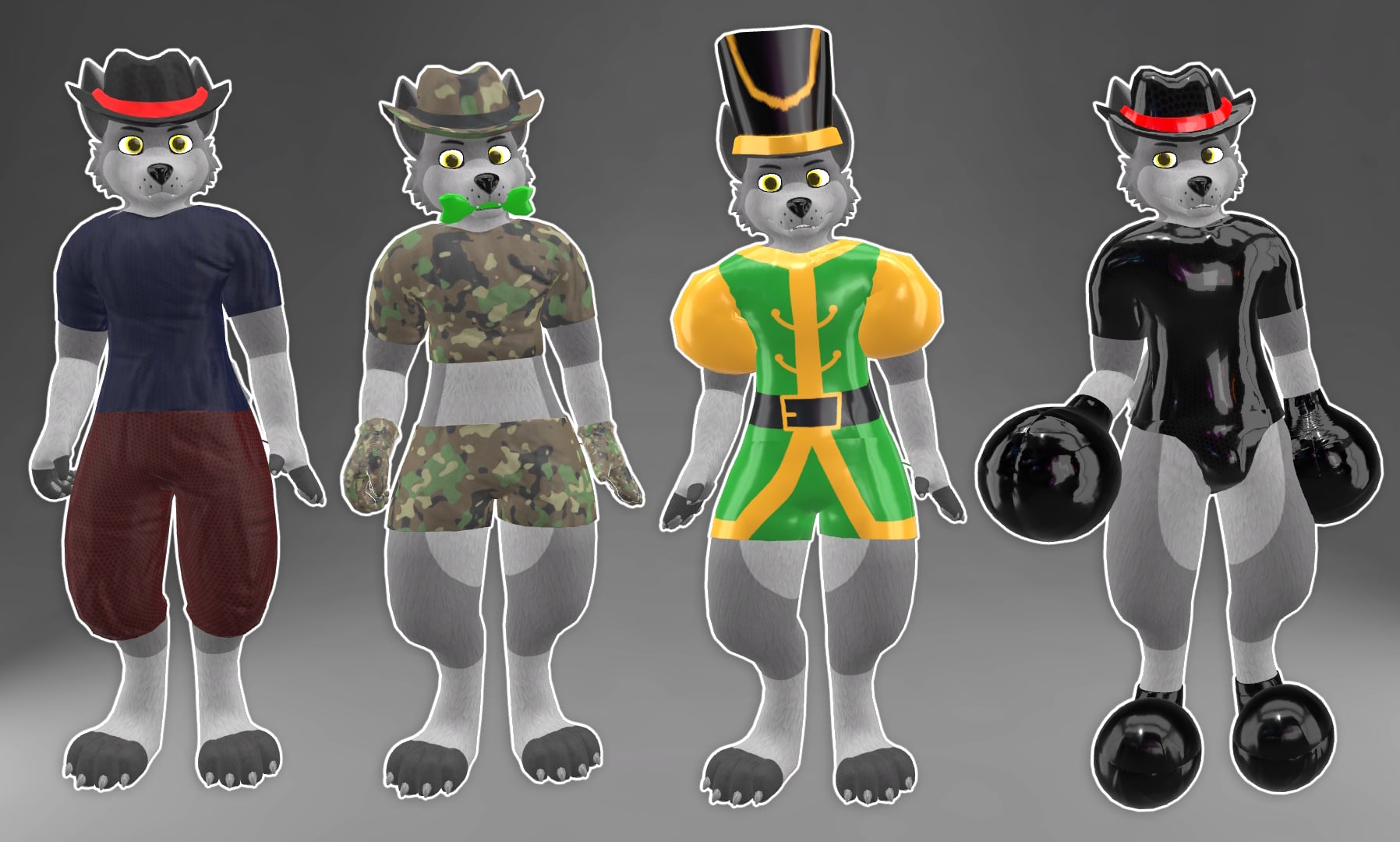 Casual Clothing - Includes a fabric shirt, crop top, pants, underwear, jockstrap and gloves. Even includes a few additional designs like camouflage, nutcracker, and the ability to make them shiny if you choose! Also includes an Audiolink design, perfect for use in clubs/parties!